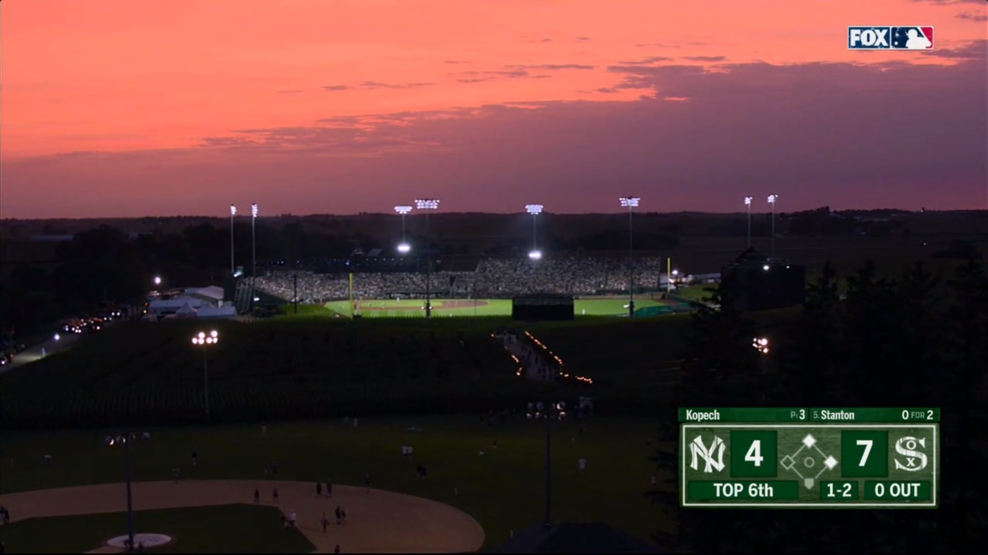 Last night Major League Baseball staged a game a the Field of Dreams, located in Dyersville, Iowa. The field is the original field used in the filming of the movie, "Field of Dreams", starring Kevin Costner. The was slightly modified (an actual fence was installed to prevent Aaron Judge from crossing over accidently), but the spirit was there.